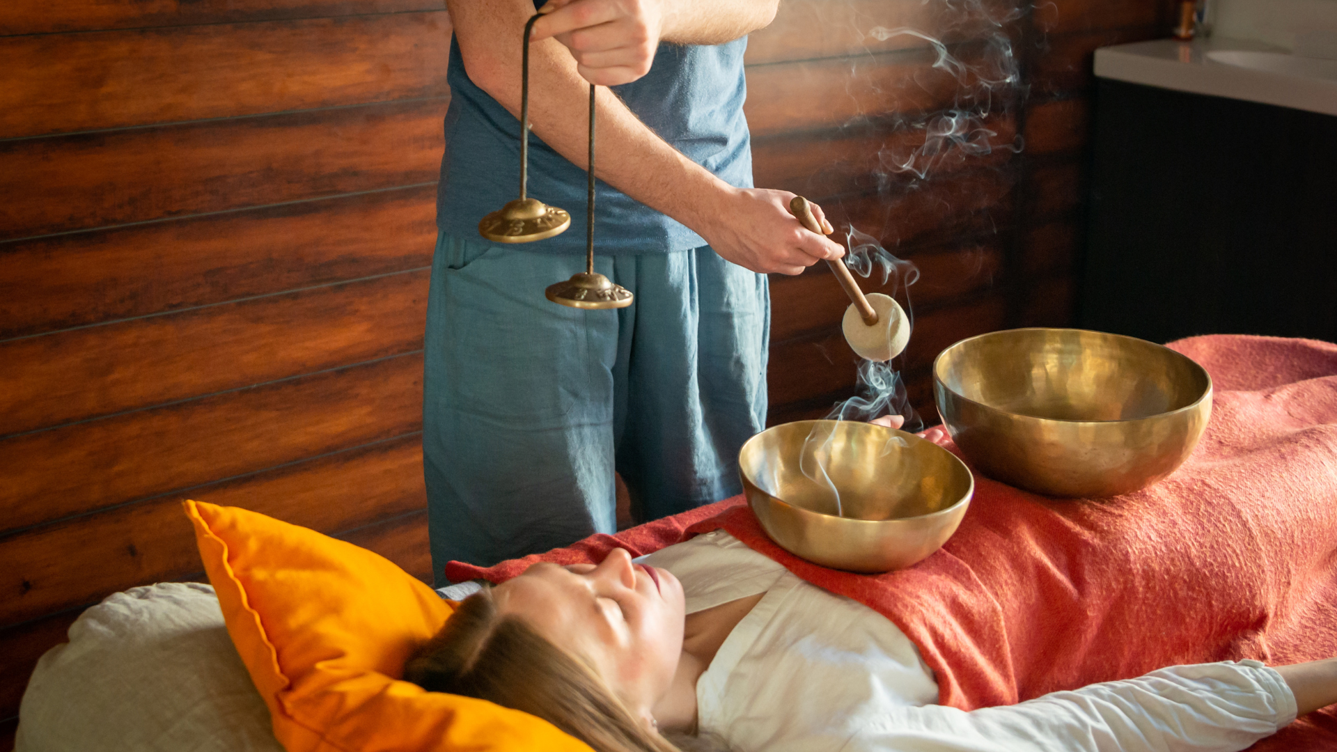 You will then lie down and be immersed in the layered tones of Tibetan singing bowls, interwoven with shamanic drumming rhythms.